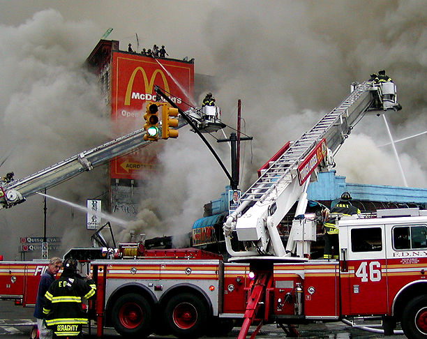 Sunday's 4th alarm Manhattan Box 66-44-1789 Dyckman & Vermelia. Taxpayer, About 6:00 AM. Photo by: Steve Spak 7/28/02