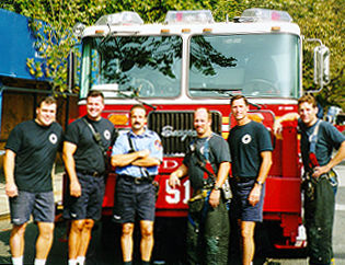From L-R are FF Matty Ehlberg, FF Tom Brennan, Lt. Frank Vignali, FF Steve Kwinter, FF Don Kleint, and FF Tom Haughney.
