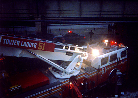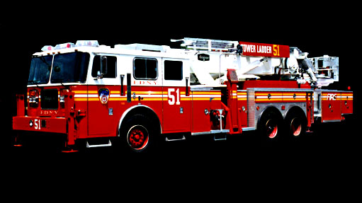 Tower Ladder 51 at their Sunday morning drill site located at I.S. 144 in the Bronx.