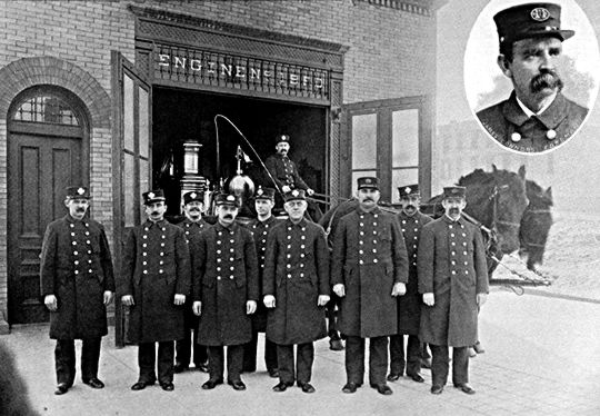 LOUIS FRITSCHLER , who drives the hose-cart of Engine No. I, was born in Baltimore, Md., in the year 1846. He served five years in the Fifth United States Artillery Band prior to his appointment in the Fire Department, which was on Aug. 6, 1883. He reported for duty to Truck No. 1. His transfer to Engine No. 1 occurred Jan. 24, 1884. A short stay with the latter organization was followed by an official order to join Engine No. 28, and in 1891 he returned to Engine No. 1.