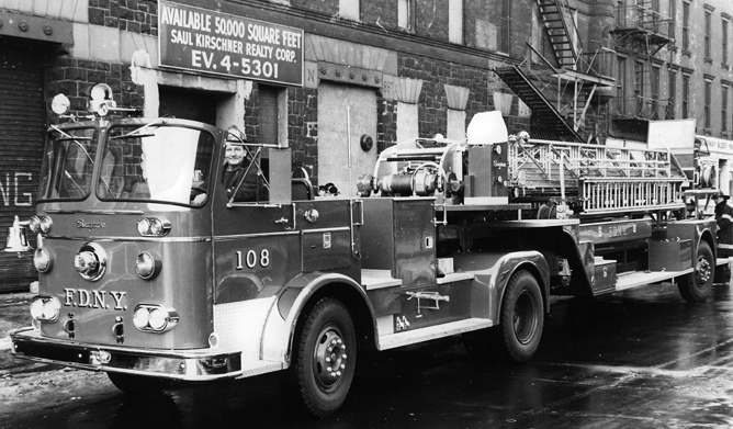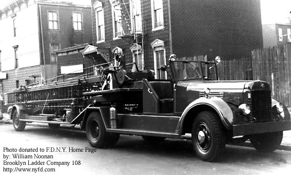 History: Ladder 108 Ladder Co. 108, now quartered at 187 Union Ave., Williamsburg, Brooklyn, began life as Hook & Ladder Co. 8 in the old City of Brooklyn Fire Department at 112 Siegel Street near Graham Avenue on November 30, 1887. During this time, to be distinctive, the Brooklyn Fire Department used two-tone green on their apparatus, while F.D.N.Y. apparatus was red. Green continued to be used until consolidation of the five bouroughs in 1898. On January 1, 1898, Ladder Company became part of the Fire Department of the City of New York. It was renumbered as Ladder Company 58 on October 1, 1899. It was not until January 1, 1913, that Ladder 58 was renumbered as Ladder Company 108. In the 110 years of Ladder 108's existence, two members lost their lives in the line of duty. A fire in Queens on March 2, 1905, took the life of Lt. George McGeary and 27 years later on May 2, 1932, Firefighter Joseph LaGrange was killed when Ladder 108 and Engine 213 collided responding to a false alarm and Firefighter LaGrange was thrown to the street. Ladder 108's tenure at 112 Siegel Street lasted 84 years and on August 9, 1971, 108 truck moved to a new firehouse at 187 Union Avenue and is still quartered there.