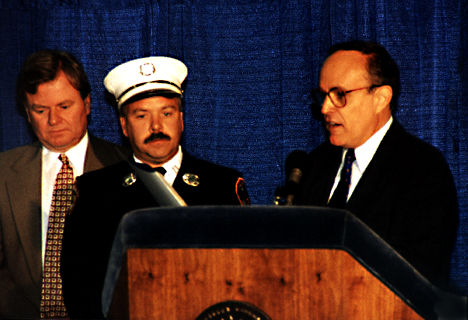 Engine 216 's Captain Smith receives a proclamation from the Mayor