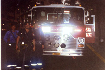 Lieutenant Wicks and the Men of Engine Company 39 at the scene at 49th Street between 5th Avenue and 6th Avenue.