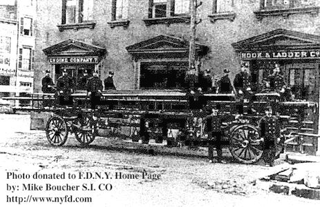 In 1784 the company was reorganized. This company never lost their organization for a single day during the existence of the Old Fire Department, and on the organization of the Paid System, Hook and Ladder Company No.1 was created September 8, 1865, using the same location, the same truck and the same red cap fronts as Mutual Hook and Ladder No.1 did, and nine of her twelve members had served in the old company. It was the only company that was continued with the same number and location, and might be said that Hook and Ladder Company No. 1 has had a continuous existence since June 16, 1784.