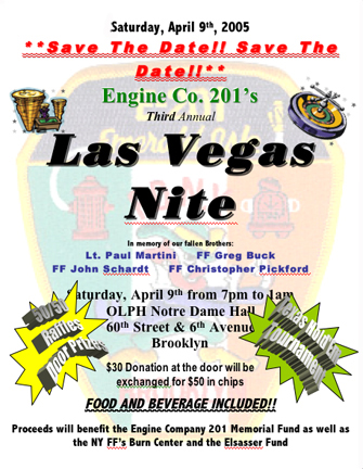 We at Engine 201 would greatly appreciate if you could post something on your website concerning our Vegas Nite fundraiser on April 9th. You and your family are more than welcome and we would also appreciate you spreading the word with your friends as well.