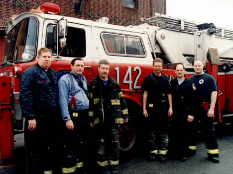 Names from left to right: Kevin Delano, Lt. Jim Magas, Glen Stordeur, Richie Ford, Joe Parella, FF Taylor (L 135).